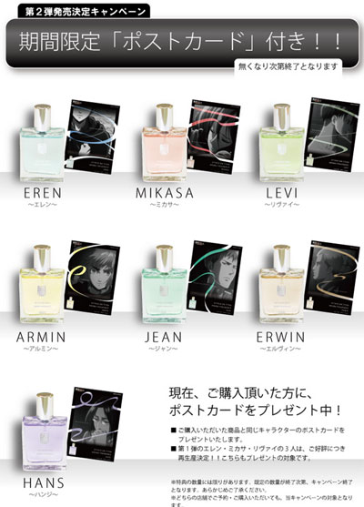 エレン ミカサ 兵長の進撃香水 発売直後に即駆逐につき再販決定 おたくま経済新聞
